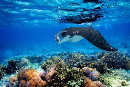 Raja Ampat memiliki kepadatan terumbu karang tertinggi di dunia. Situs penyelaman di sini demikian cantik, dipenuhi terumbu karang yang berwarna-warni dan berbagai spesies ikan. Yang paling terkenal adalah ikan pari manta berwarna hitam yang gagah dan elegan—yang dipercaya berasal dari daerah ini. Dipercaya, pari manta bisa ditemui di beberapa spot menyelam di Indonesia maupun di luar negeri, karena mereka bermigrasi dari Raja Ampat.