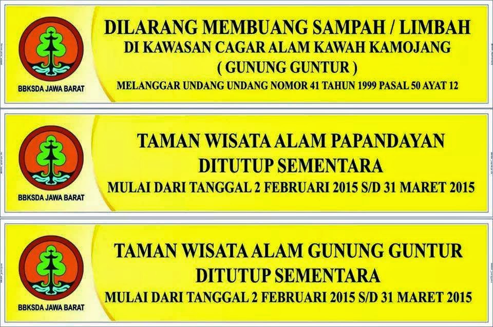 “Memperhatikan kondisi cuaca yang cednderung extrim, dan dikhawatirkan dapat membahayakan pengunjung maupun masyarakat sekitar yang masuk kedalam kawasan, serta memperhatikan kebutuhan pemulihan ekosistem maka TWA Papandayan dan TWA Gunung Guntur kami tutup sementra mulai tanggal 2 Februari sampai dengan 31 Maret 2015.”
