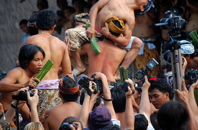 Keunikan lain dari peristiwa ini adalah para kaum lekaki akan ikut serta dalam perang perangan dengan menggunakan sarung yang dililit di pinggang dan menggunakan senjata daun pandan dan tameng. Dan yang paling menarik anda dapat juga ikut serta dalam festifal ini.