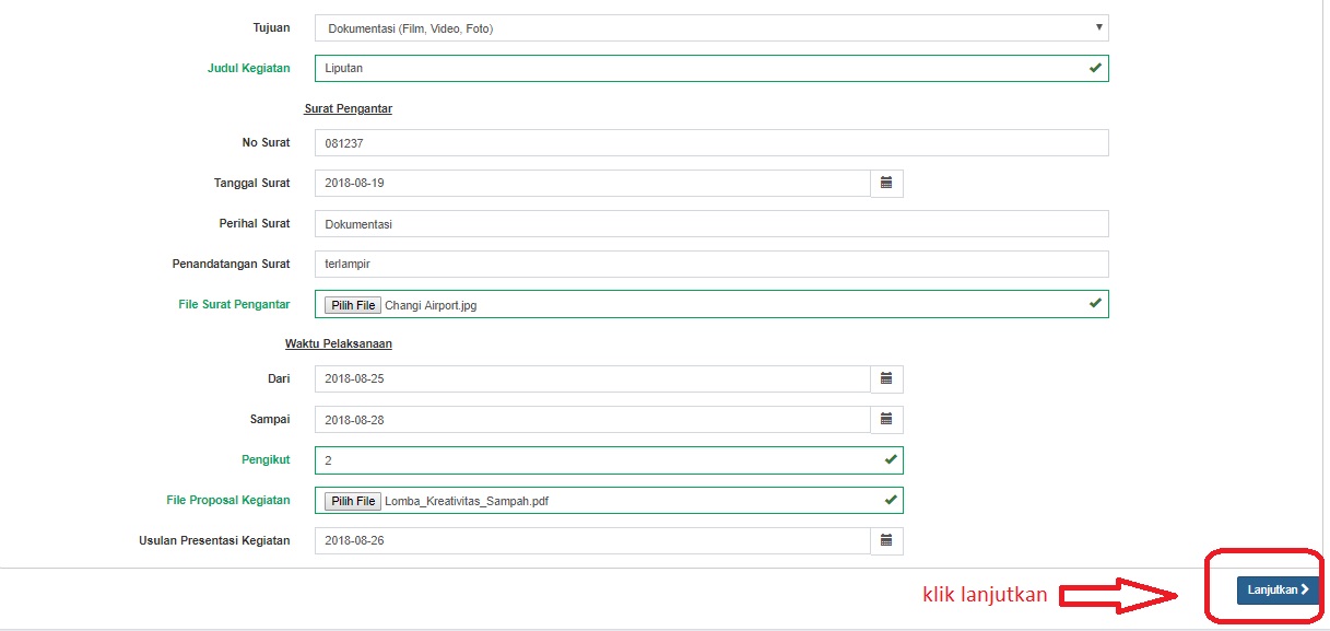 Setelah semua terisi dengan lengkap kemudian klik lanjutkan di pojok kanan bawah.