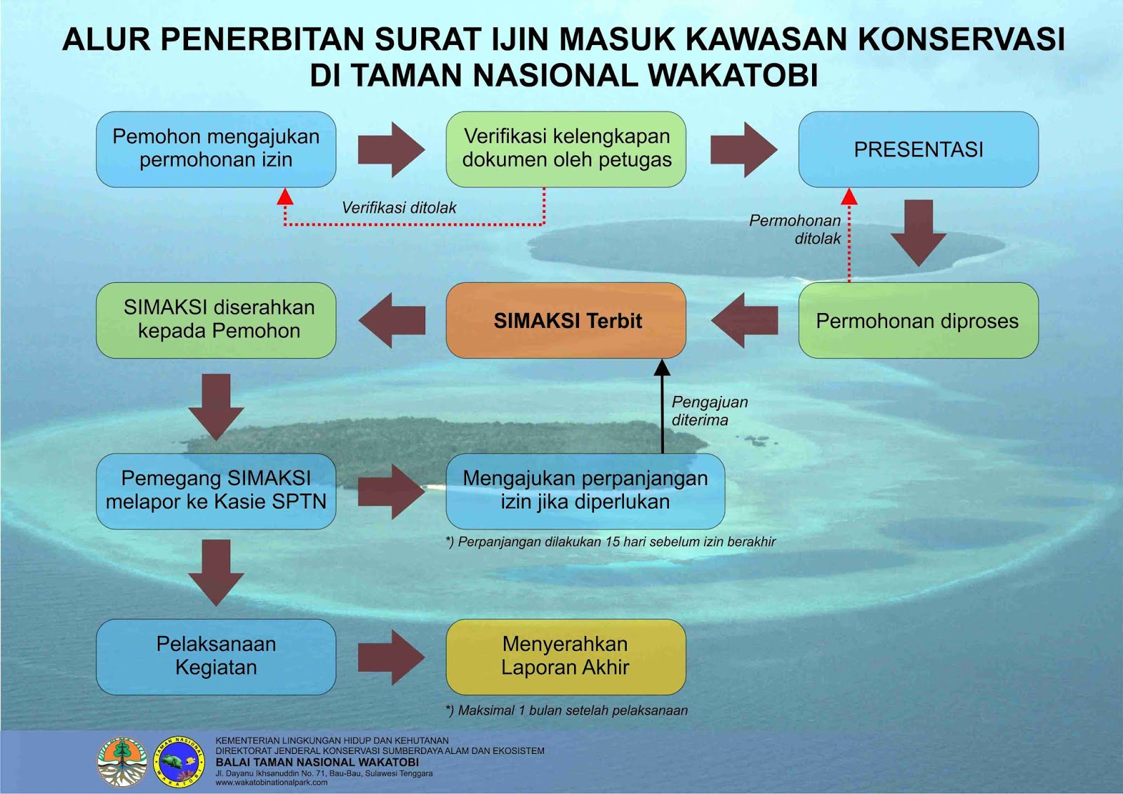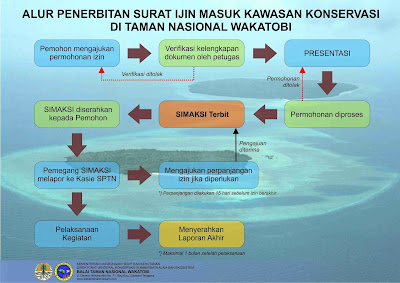 Ada bebrapa alur penerbitan surat izin masuk kawasan koneservasi di Taman Nasional Wakatobi