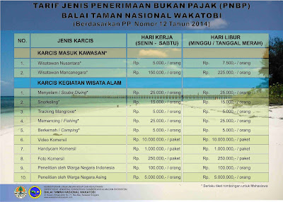 | Tarif Masuk Kawasan Konservasi Taman Nasional Wakatobi |